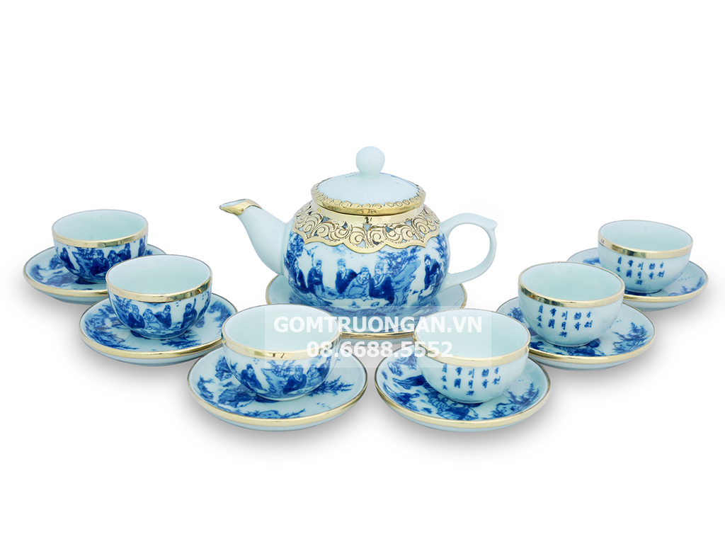 Dòng sản phẩm bộ ấm chén đến từ Bát tràng luôn nhận được sự ủng hộ và yêu thích của nhiều đối tượng khách hàng ở đâu . Cùng gốm Bát Tràng Trường An tìm hiểu về vẻ đẹp và công dụng của bộ ấm chén bọc đồng Bát Tràng men lam Trúc Lâm Thất Hiền dáng chóp nhé.
