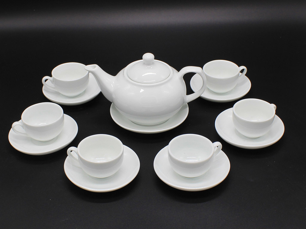Bộ sản phẩm bao gồm : 1 ấm trà sản xuất , 6 chén trà đánh giá , 7 đĩa kê.