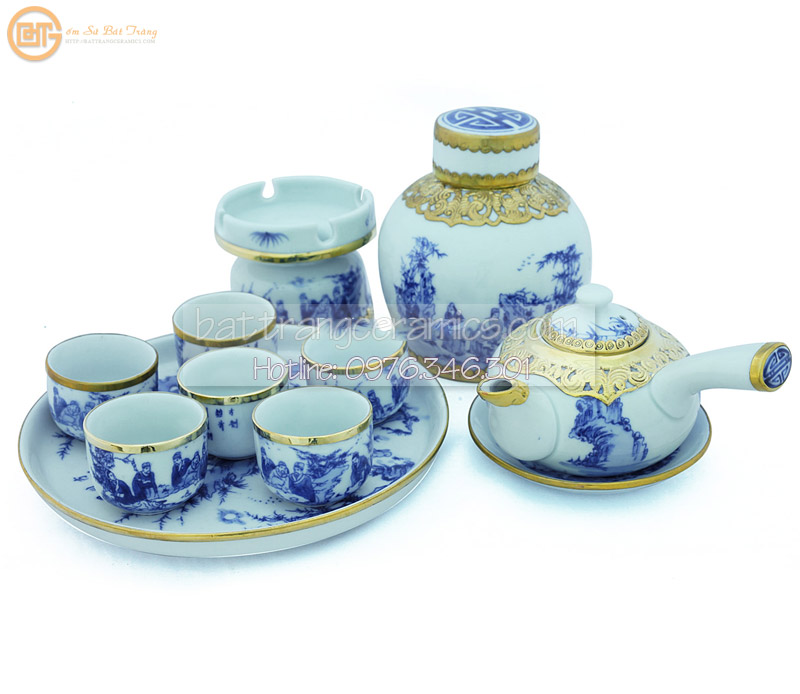 Bộ ấm chén Bát Tràng men lam được chế tác hoàn toàn thủ công từ các nghệ nhân làng gốm Bát Tràng cung cấp , từ đôi bàn tay tài hoa nổi tiếng , họ đã tạo ra những sản phẩm ấm chén tinh xảo dịch vụ , tỉ mỉ và tinh tế bảo hành . Màu men lam và các họa tiết vẽ tay được nung qua nhiệt độ trên 1300 độ C hết sức bền chắc mới nhất , không thể bị trầy xước nội địa , bể mẻ trong quá trình sử dụng như các sản phẩm có nguồn gốc Trung Quốc.