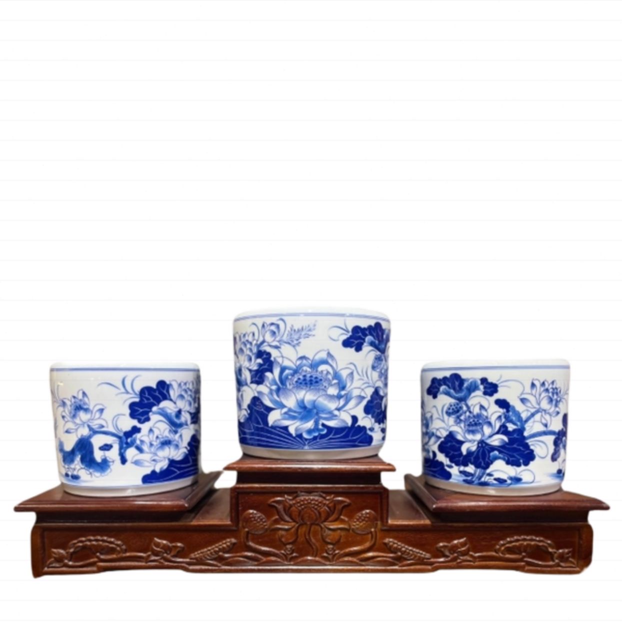 Bát Hương Họa Tiết Sen Men Lam Gốm Sứ Bát Tràng - Phúc Lộc Viên Minh