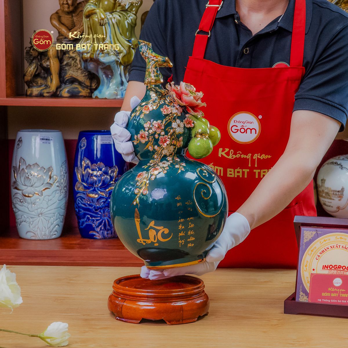 Nếu bạn đang tìm kiếm địa chỉ uy tín để mua Bình Hồ Lô Xanh Lục Tài Lộc Vẽ Vàng chính gốc Bát Tràng tại TP.HCM, Không Gian Gốm Bát Tràng là lựa chọn hàng đầu đẹp . Chúng tôi chuyên cung cấp các sản phẩm bình hút lộc nhập hàng , bình hồ lô gốm sứ Bát Tràng cao cấp nhập khẩu , hàng thủ công link web , nguồn gốc rõ ràng hàng giả , chất lượng vượt trội. Hãy liên hệ với chúng tôi để được tư vấn và sở hữu Bình Hồ Lô Xanh Lục Tài Lộc Vẽ Vàng địa chỉ , góp phần mang lại tài lộc phản hồi , bình an và thịnh vượng cho không gian sống hoặc làm việc của bạn!