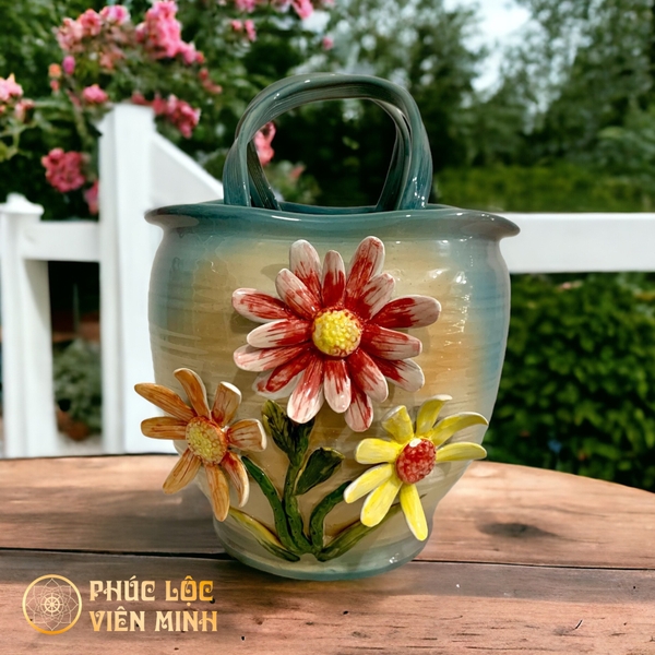 Bình Hoa Cao Cấp Đắp Nổi Độc Bản Gốm Sứ Bát Tràng - Phúc Lộc Viên Minh - VM460