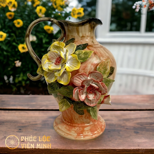 Bình Hoa Cao Cấp Đắp Nổi Độc Bản Gốm Sứ Bát Tràng - Phúc Lộc Viên Minh - VM461