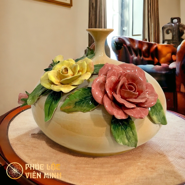 Bình Hoa Cao Cấp Đắp Nổi Độc Bản Gốm Sứ Bát Tràng - Phúc Lộc Viên Minh - VM452