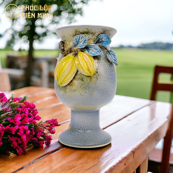 Bình Hoa Cao Cấp Đắp Nổi Độc Bản Gốm Sứ Bát Tràng - Phúc Lộc Viên Minh - VM530