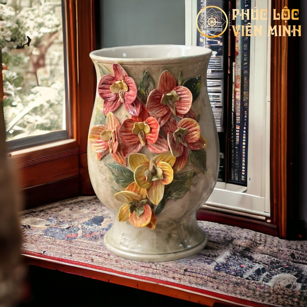 Bình Hoa Cao Cấp Đắp Nổi Độc Bản Gốm Sứ Bát Tràng - Phúc Lộc Viên Minh - VM465