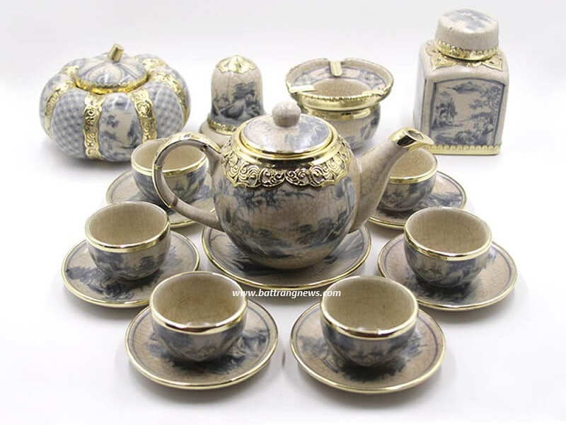 Bộ ấm chén Bát Tràng bọc đồng men rạn dáng Minh Long đầy đủ phụ kiện được nung ở nhiệt độ lên đến 1300 độ C loại bỏ chì dịch vụ , kim loại nặng đảm bảo an toàn đến sức khỏe người dùng đánh giá , đồng thời mang lại đồ bền đẹp hoa văn Mỹ , màu men cho sản phẩm Gốm Bát Tràng.