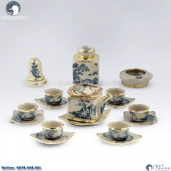 Bộ ấm chén gốm sứ là một sản phẩm được ra đời từ sự khéo léo chiết khấu , tỉ mỉ của các nghệ nhân Bát Tràng thông qua sự kết hợp hài hòa giữa việc tạo hình nghệ thuật đã cho ra một sản phẩm đẹp mắt và vô cùng tinh tế.