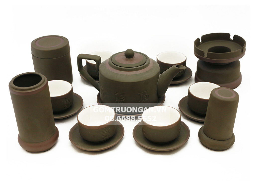 Bộ ấm chén tử sa Bát Tràng tích rêu kẻ chỉ đầy đủ phụ kiện mang công dụng tuyệt vời của ấm Tử Sa truyền thống đăng ký . Đó là khả năng lưu giữ hương thơm bảo hành , vị ngon nhất của trà nhờ tác dụng của những vi khoáng có trong gốm Tử Sa.