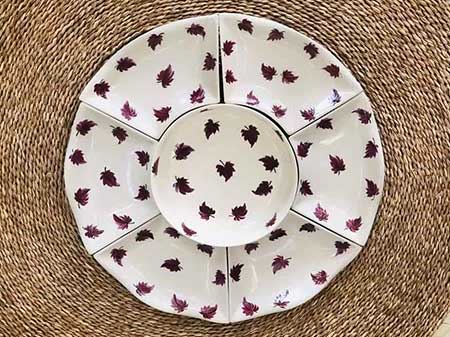 Bộ bát đĩa hoa mặt trời bát tràng vẽ lá phong đỏ