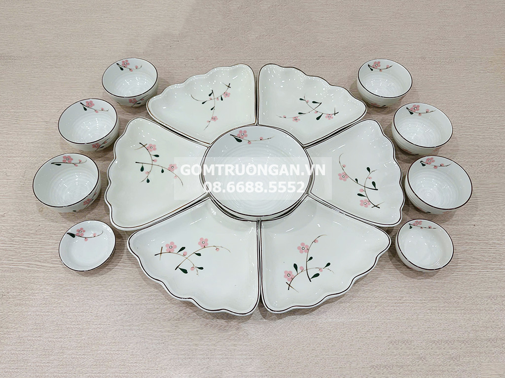 | Sản phẩm bao gồm | 6 đĩa, 6 bát ăn cơm thống kê , 1 tô cao cấp , 1 mắm chấm miễn phí , 1 đĩa gia vị |