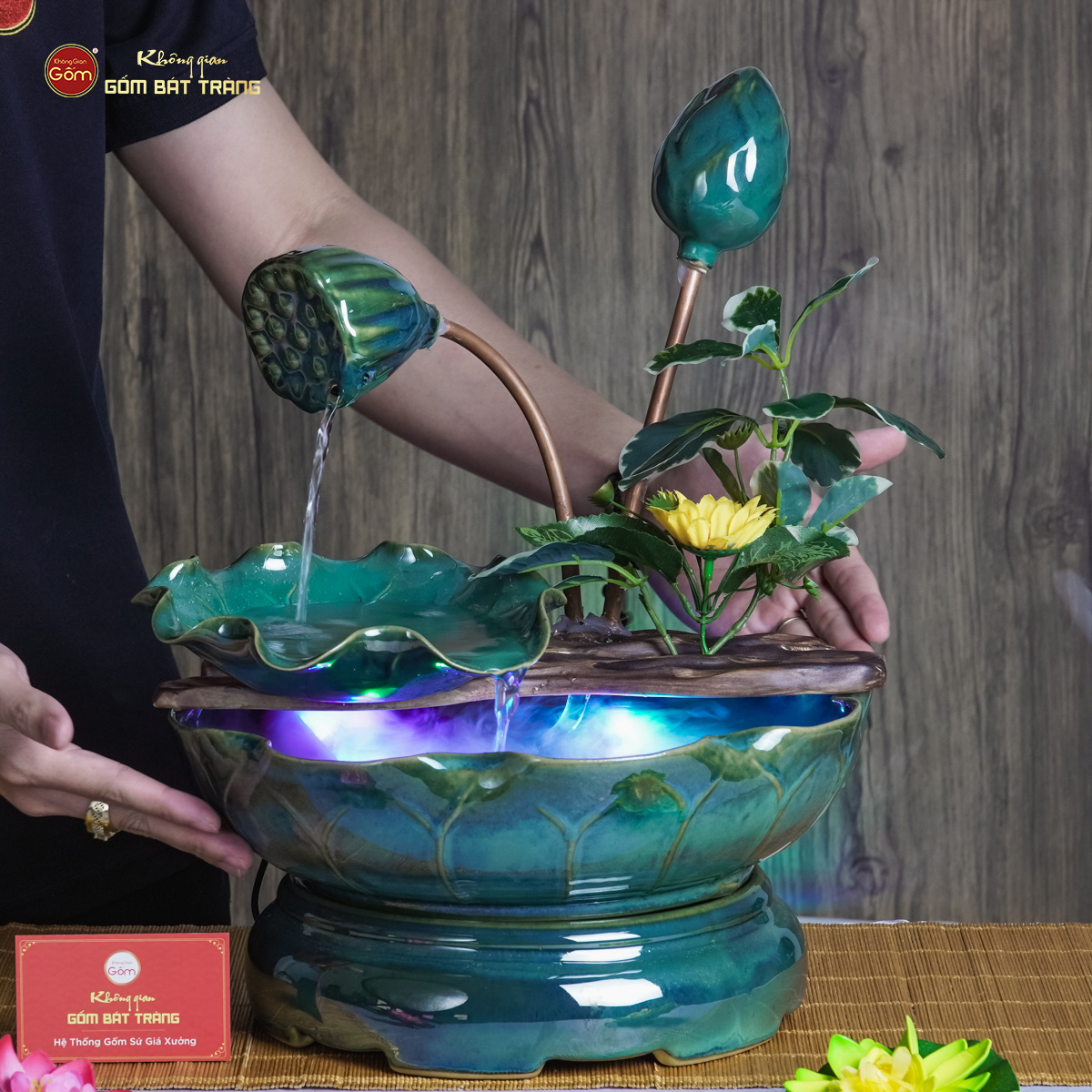 Không Gian Gốm Bát Tràng là địa chỉ uy tín chuyên cung cấp các sản phẩm gốm sứ cao cấp giá bán lẻ , trong đó có bộ thác nước phong thủy Nụ Sen tư vấn . Tại đây địa chỉ , quý khách sẽ được chiêm ngưỡng và lựa chọn những sản phẩm gốm sứ tinh xảo dễ dàng , mang đậm dấu ấn nghệ thuật truyền thống sản xuất . Đội ngũ nhân viên chuyên nghiệp và giàu kinh nghiệm sẽ tư vấn tận tình giá bán , giúp quý khách tìm được sản phẩm phù hợp nhất với nhu cầu và không gian sống của mình.