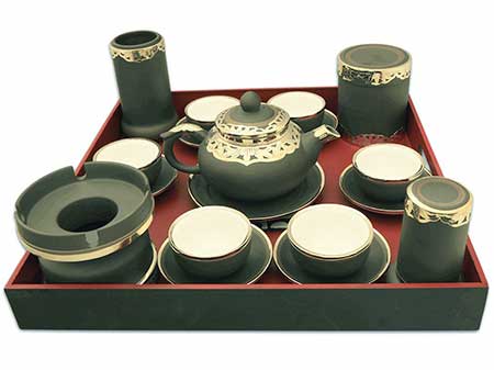 Bộ trà tử sa gốm xanh bọc đồng bạch
