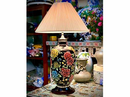 Đèn bàn gốm cao cấp vẽ hoa phù dung hàng nghệ nhân Bát Tràng