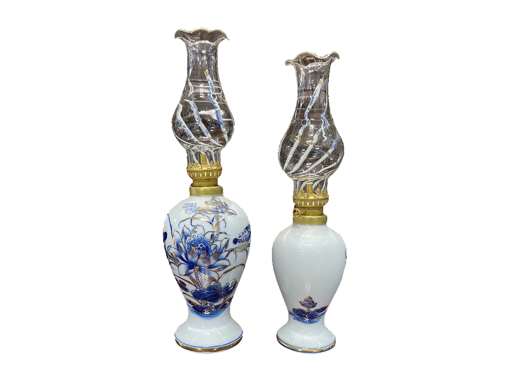 | Hướng dẫn sử dụng | Vặn lắp ở phần cổ đèn để đổ dầu vào trong lòng đăng ký , bỏ bóng đèn ra để châm lửa vào đầu bấc trung tâm , vặn núm điểu chỉnh độ sáng của đèn |