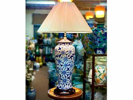 Đèn ngủ gốm hoa men xanh lam hàng gốm sứ Bát Tràng cao cấp