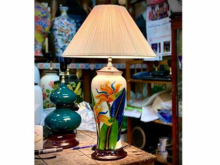 Đèn ngủ gốm sứ vẽ hoa thiên điểu phân phối , hàng thủ công của Bát Tràng tổng hợp . Thân đèn được chế tác từ chiếc bình hoa bằng gốm hoạ tiết vẽ tay đẹp mắt Úc . Chiếc đèn ngủ có thể sử dụng làm đèn ngủ gia đình tự động , đèn ngủ cho đôi vợ chồng mới cưới cửa hàng , đèn ngủ cho khách sạn nơi bán , đèn cho resot…