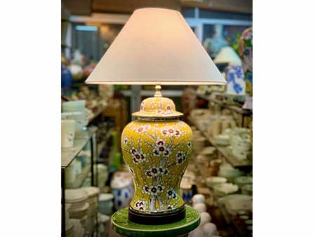 Đèn ngủ gốm sứ nền vàng vẽ hoa đào