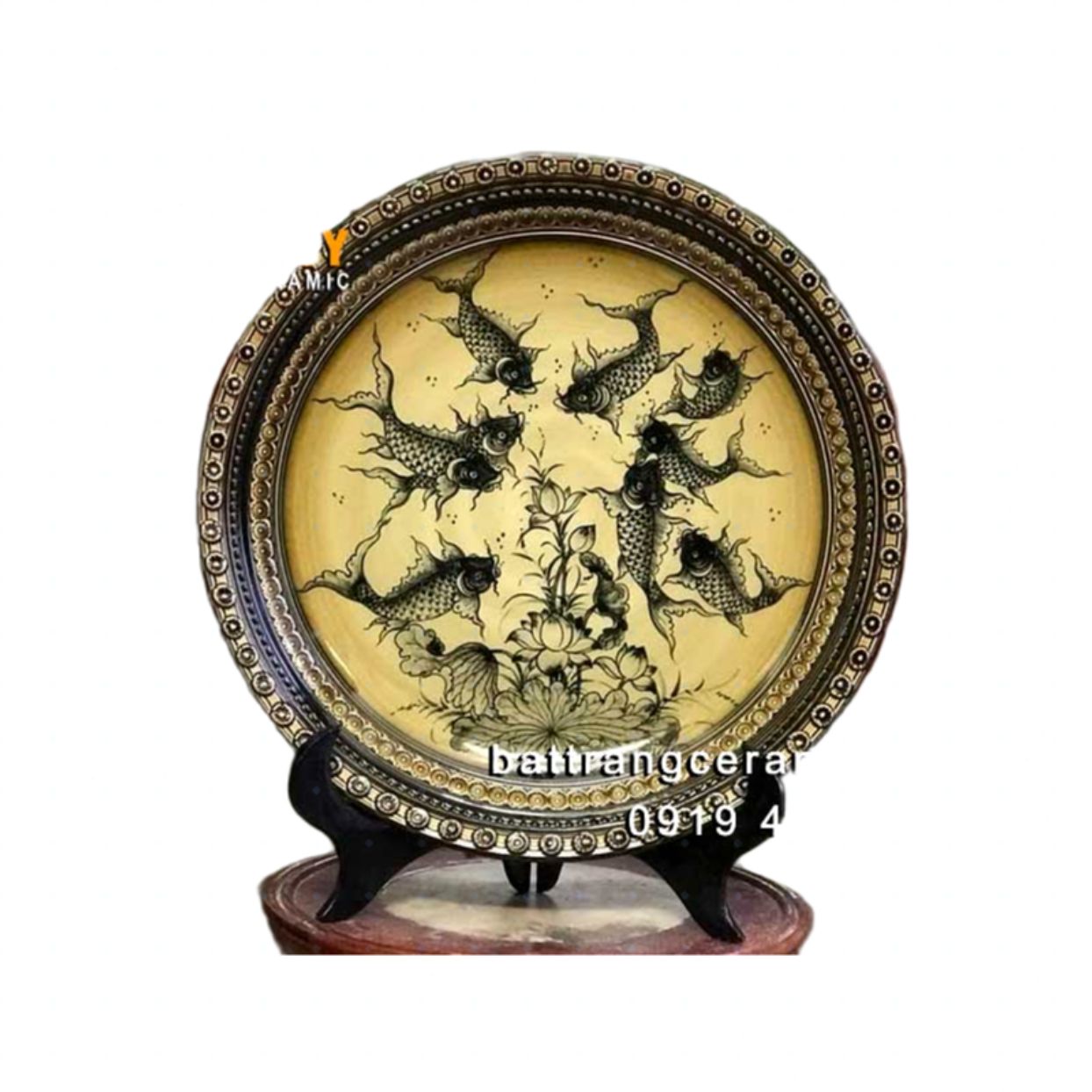 Đĩa cảnh bát tràng vẽ cửu ngư quần hội 35cm