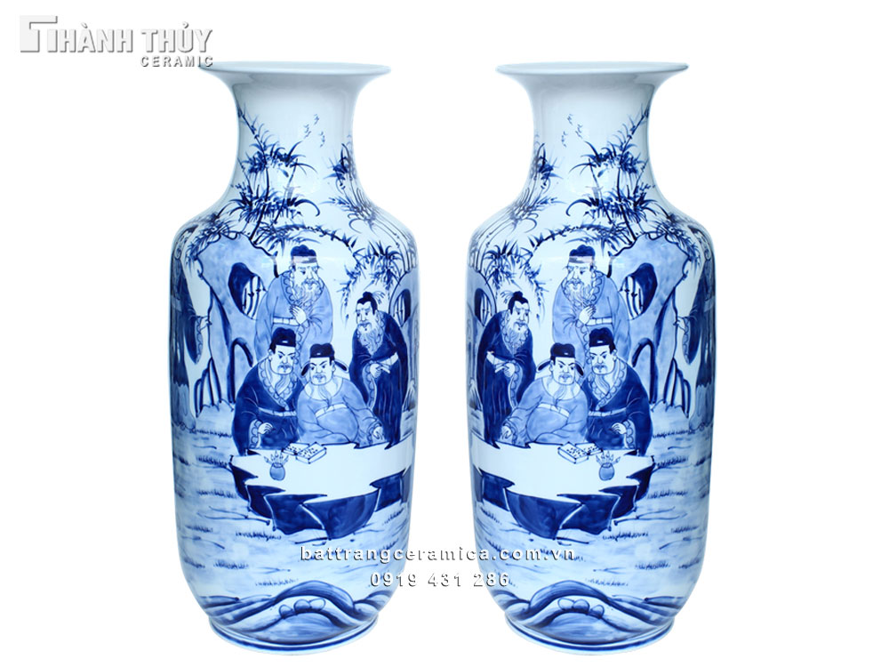 Đôi lọ dáng bí vẽ trúc lâm thất hiền, men lam bóng so sánh , gốm cao cấp Bát Tràng bỏ sỉ , kích thước cao 55cm đường kính miệng 17cm – Gốm Thành Thủy đặt hàng theo yêu cầu.