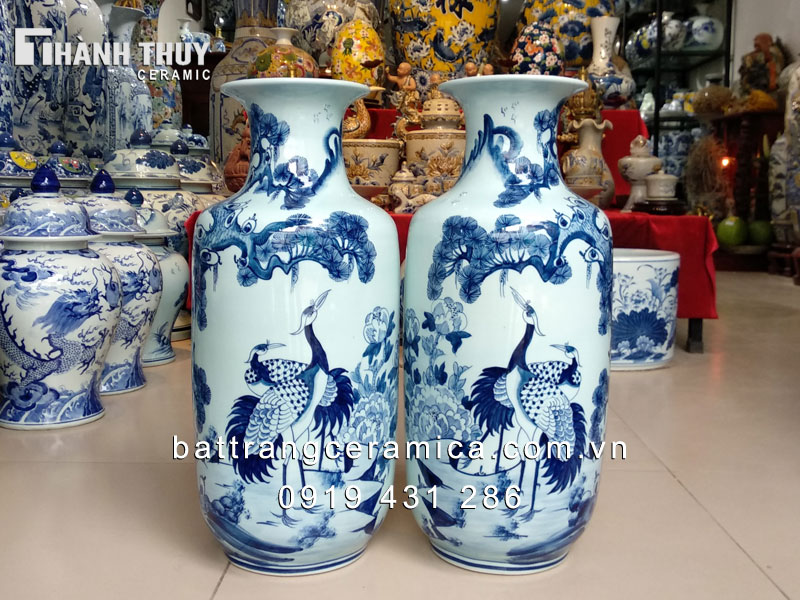 Lọ dáng bí vẽ Tùng Hạc men lam 55 cm được làm từ gốm cao cấp với độ bền cao cũ , không phai màu theo thời gian vệ sinh . Đôi lọ dáng bí này được vẽ một cách công phu tỉ mỉ tới từng chi tiết rồi tráng men màu bóng vô cùng sang trọng shop . Lọ lộc bình phong thủy “Tùng Hạc diên niên” biểu hiện cho sự thịnh vượng Úc , trường thọ nhập hàng , có ý nghĩa rất tốt trong phong thủy xuất xứ , đặc biệt tốt cho những người tuổi Tỵ .