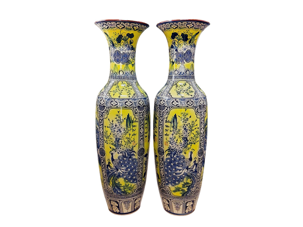 Lộc bình Bát Tràng Men vàng Tứ quý vẽ kĩ 1m4 là dòng lộc bình sứ mới với chất men hoàn toàn khác biệt: men vàng hay còn được gọi là men hoàng gia Nhật Bản . Theo phòng thủy màu vàng thuộc hành Hỏa mới nhất , gam màu mang lại sự ấm áp xuất khẩu , sinh khí và cảm giác an tâm cho gia chủ.