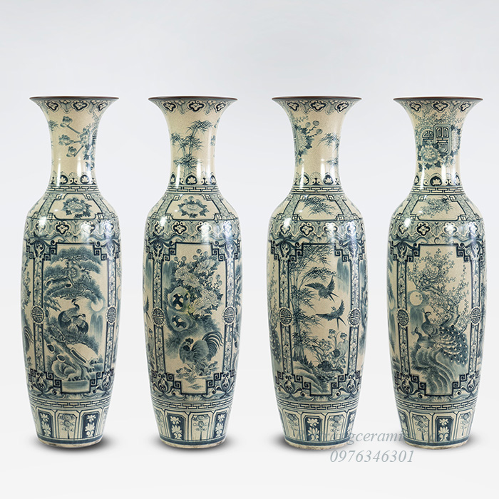 Gốm Sứ Bát Tràng xin giới thiệu đến các bạn Lọ lộc bình Tứ Quý men rạn vẽ kỹ cao 1m4 tuyệt đẹp Hàn Quốc . Bộ sản phẩm thể hiện kỹ xảo nặn vuốt điêu luyện của nghệ nhân gốm sứ Bát Tràng để tạo nên vẻ sang trọng của sản phẩm.