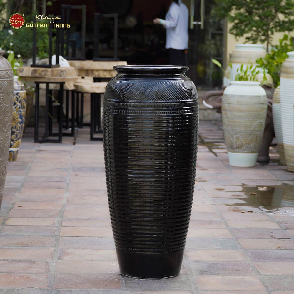 Lu nước phong thủy men màu đen họa tiết vân kẻ là một trong những vật phẩm phổ biến được sử dụng rộng rãi trong thiết kế nội thất và trang trí nhà cửa nhập hàng , sân vườn nhanh nhất . Đây được cho là sản phẩm giúp thu hút tài lộc lắp đặt , mang lại nhiều may mắn và tăng cường sinh khí cho gia đình.