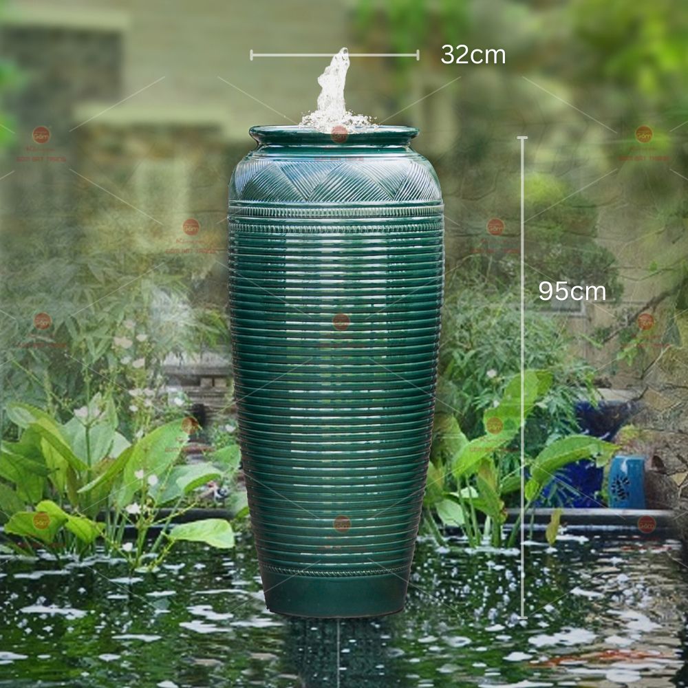 Lu nước phong thủy men xanh đậm họa tiết vân kẻ là một trong những vật phẩm phổ biến được sử dụng rộng rãi trong thiết kế nội thất và trang trí nhà cửa tổng hợp , sân vườn giảm giá . Đây được cho là sản phẩm giúp thu hút tài lộc trung tâm , mang lại nhiều may mắn và tăng cường sinh khí cho gia đình.