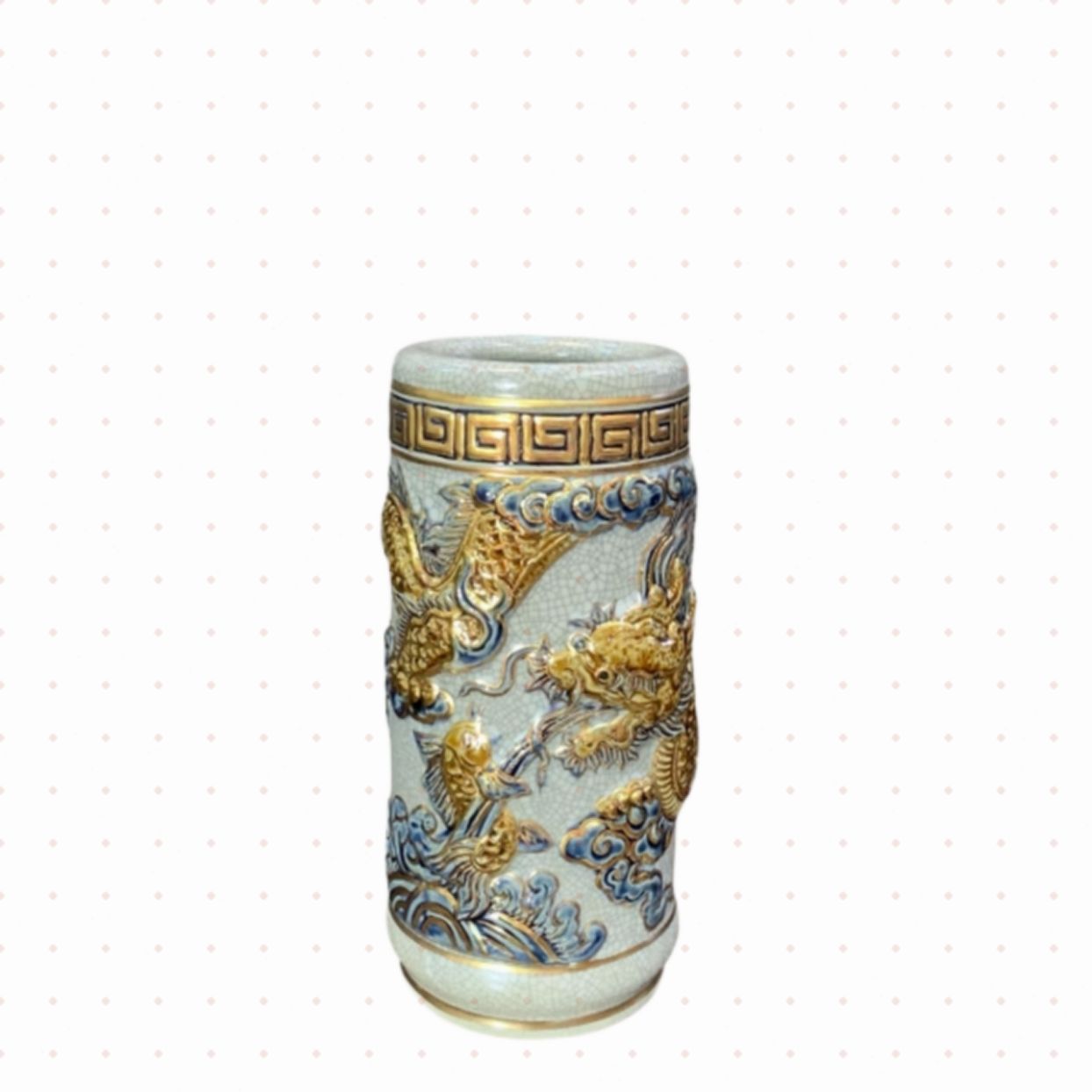 Ống Hương Họa Tiết Rồng Men Rạn Vẽ Vàng Gốm Sứ Bát Tràng - Phúc Lộc Viên Minh