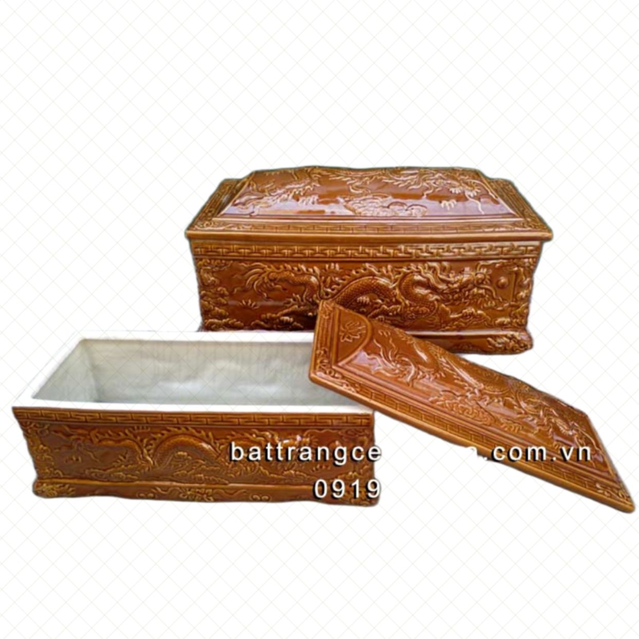 Bộ tiểu quách sứ màu nâu hoàng thổ Rồng luân hồi