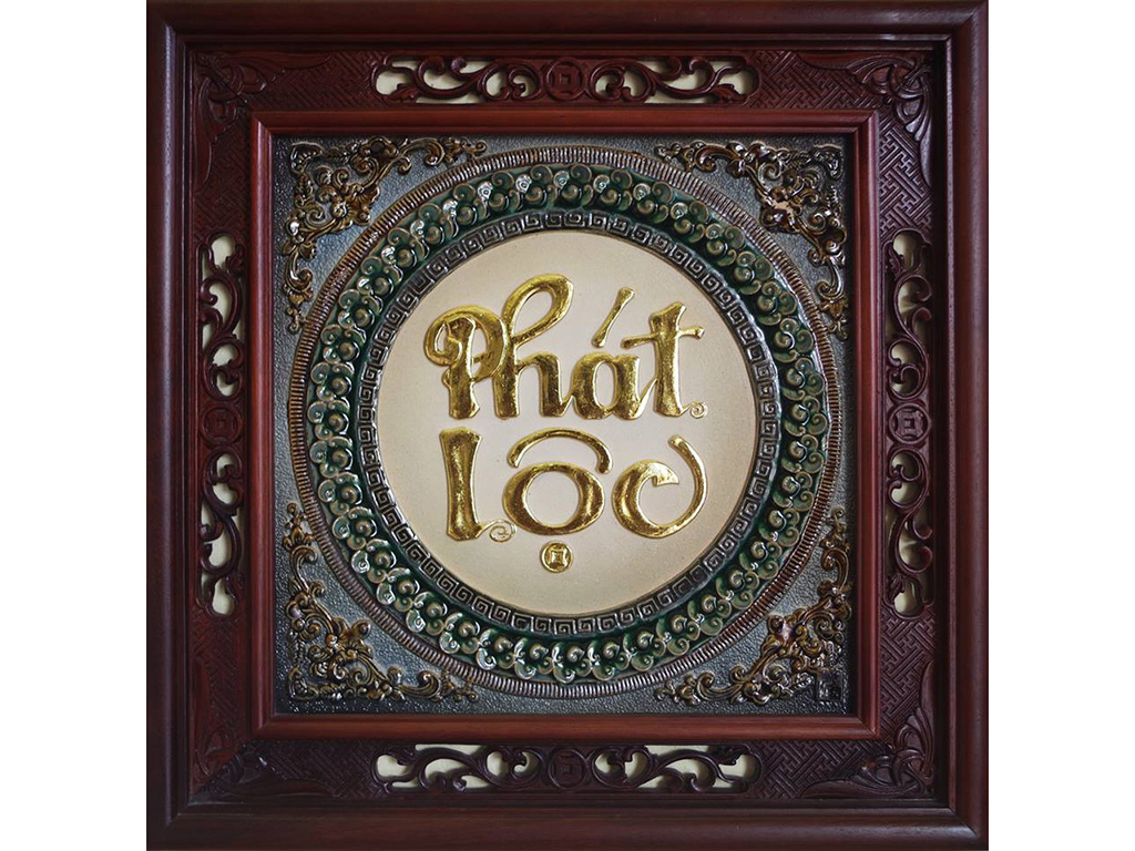 Bức tranh nổi lên vẻ đẹp lấp lánh vàng kim của chữ Phát Lộc được đắp nổi trau chuốt và mềm mại kết hợp với nghệ thuật dát vàng công phu Trung Quốc , tinh xảo bởi đôi bàn tay của người nghệ nhân mang lại vẻ đẹp thẩm mỹ cao cùng sự sang trọng và đẳng cấp riêng cho sản phẩm.