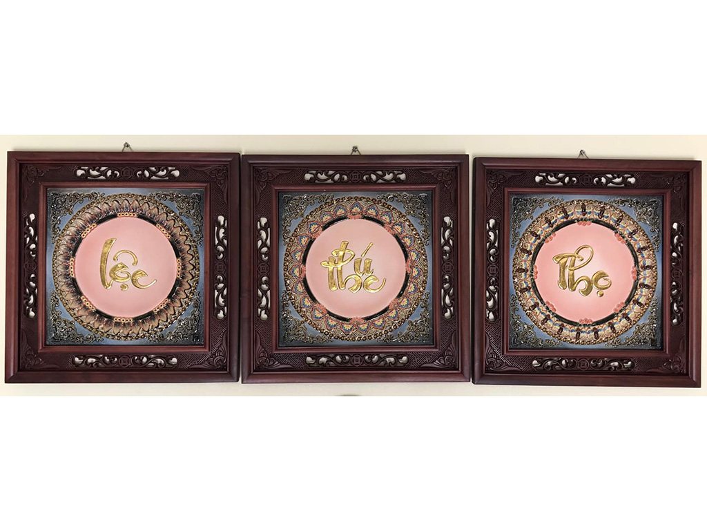 Nổi bật trên nền men hồng đào nhẹ nhàng trên mỗi bức tranh là hình ảnh các chữ ‘’Phúc tiki , Lộc giảm giá , Thọ‘’ được đắp nổi và dát vàng thủ công rất tinh xảo và tỉ mỉ ở đâu uy tín . Từ xa xưa chất liệu vàng kim luôn được coi là nguyên liệu quý qua app , có giá trị cao là biểu tượng của sự giàu sang nhận hàng , quyền quý đặt mua . Kết hợp với các hoa văn tốt nhất , họa tiết được chạm khắc cầu kỳ càng làm tăng vẻ đẹp sang trọng xuất xứ , trang nhã cho sản phẩm.